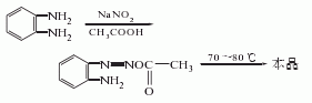 1.由鄰三胺與亞硝酸鈉反應(yīng)而得。將鄰二胺加入50℃水中溶解,再加入冰醋酸,降溫至5℃,加入亞硝酸鈉攪拌反應(yīng)。反應(yīng)物漸漸變成暗綠色,溫度升至70-80℃,溶液變?yōu)榻奂t色,于室溫放置2h,冷卻,濾出結(jié)晶,用冰水洗滌,干燥得粗品,將粗品減壓蒸餾,收集201-204℃(2.0kpa)的餾分,再用重結(jié)晶,可得熔點為96-97℃的產(chǎn)品,產(chǎn)率80%左右。曾有報道用亞硝酸鈉處理多菌靈的縮合廢水而得副產(chǎn)物并三氮唑。